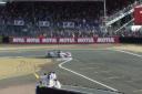 Johnny Herbert in front of Frank Biela at entry of the Dunlop curve.