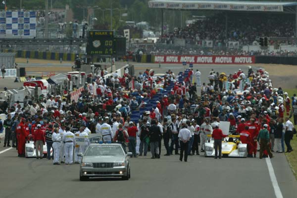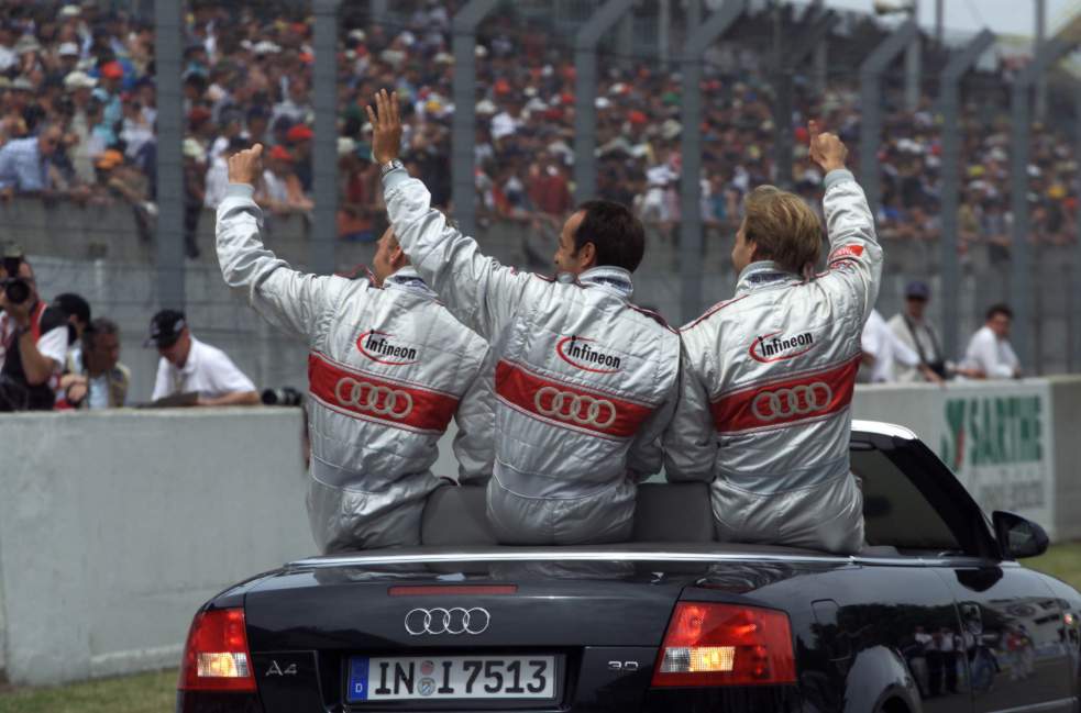 Tom Kristensen, Frank Biela and Emanuele Pirro during the drivers'parade before the start of the race.