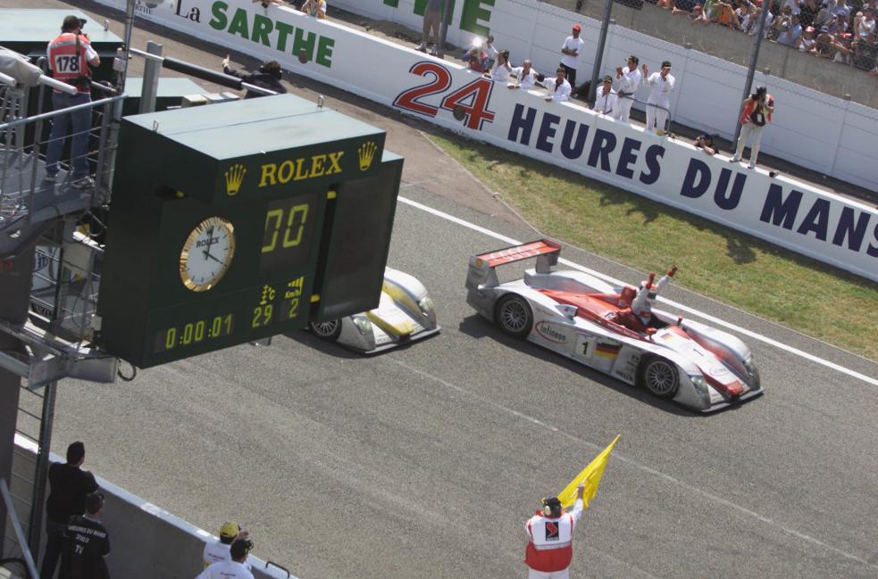 16 h : After 24 hours Emanuele Pirro crosses the finish line first.
