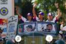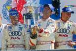 Emanuele Pirro, Allan McNish and Frank Biela on the podium at Le Mans